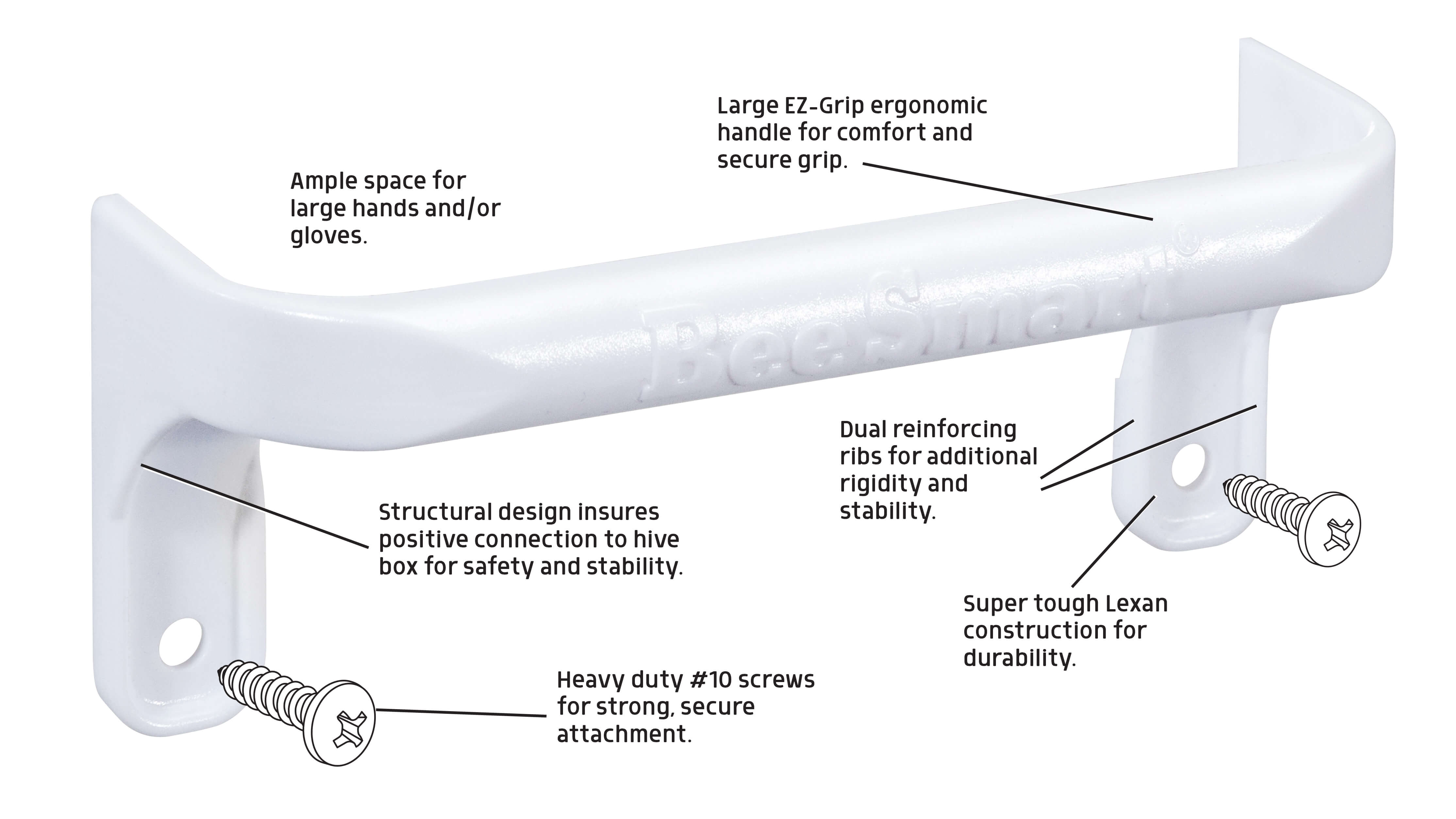 Discover the easiest, safest, most secure, convenient and versatile product for handling bee boxes without the hassle and pain of using hard to hold indents. Bee kind to your back and fingers. Ergonomic design is comfortable with or without gloves.